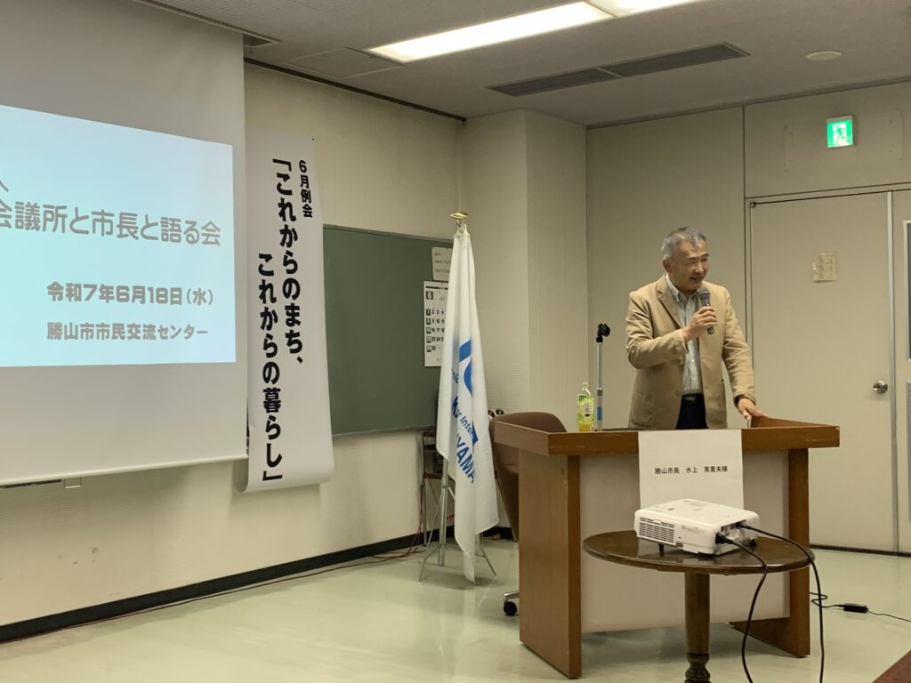 6月18日市民交流センターにて、水上勝山市長をお招きしまして、今の勝山これからの勝山について、ご講演していただきまた意見交換をさせていただきました。